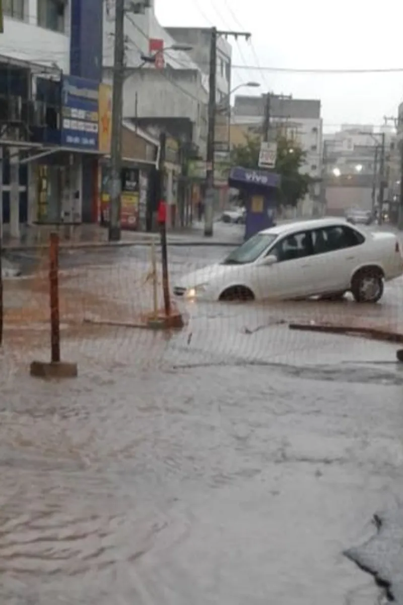 Carro cai em buraco em Campo Grande, Cariacica. |  Foto: Internauta