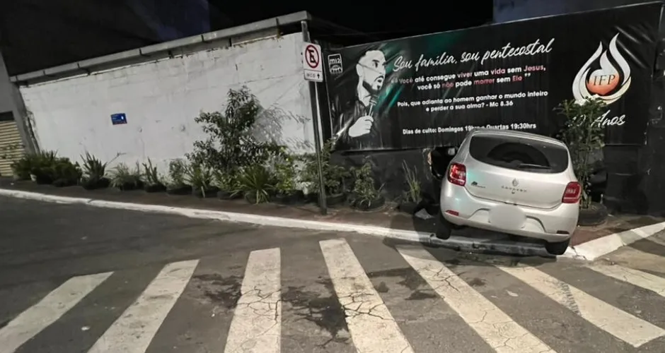 Um carro invadiu um muro de uma igreja localizada na avenida Marechal Campos em Vitória. O motorista perdeu o controle e colidiu frontalmente na noite desta quarta-feira (12).