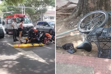 Ciclista e duas pessoas que estavam na motocicleta precisaram ser socorridas pelo Corpo de Bombeiros e Samu
