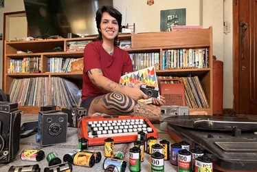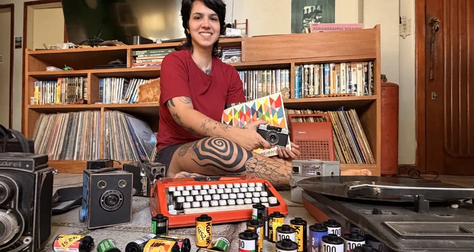 A cineasta Luiza Grillo Rabello, 29 anos, é um exemplo desse comportamento. Colecionando objetos como discos de vinil, livros e câmeras analógicas, ela encontra neles uma forma de se conectar com histórias e vivências que atravessam o tempo.