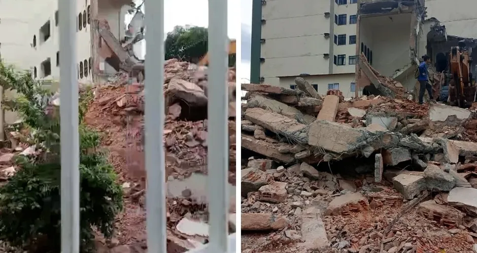 Destroços de demolição de prédio atingem salão de beleza em Vila Velha