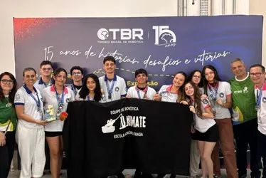Alunos vencedores do Torneio Brasil de Robótica (TBR), que aconteceu no sábado (13) e domingo (14) em Belo Horizonte (MG)