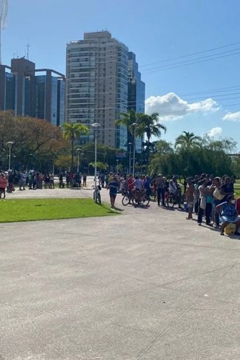 Populares formam uma longa fila na Praça do Papa, em Vitória, na manhã dessa terça-feira (24) para participar de uma ação que vai doar uma tonelada de peixe. Trata-se de um protesto organizado pelo Sindicato dos Pescadores profissionais, artesanais, aquicultores, marisqueiros, criadores de peixes do Estado (Sindipesmes).