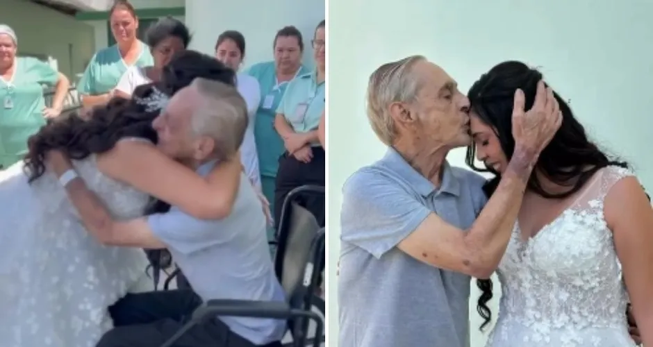 A emoção tomou conta da Santa Casa de Guaçuí, no Sul do Espírito Santo, em uma cena marcada por afeto e sensibilidade. A pedagoga Tati Martins foi até o hospital, onde o pai está internado, para realizar o desejo dele de vê-la vestida de noiva, já que não pôde comparecer à cerimônia realizada no último fim de semana.