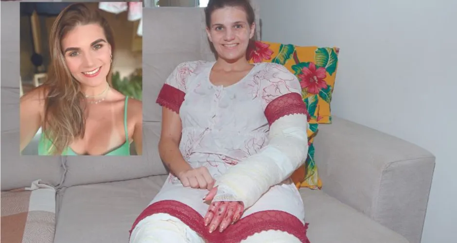 Durante a internação, ela fez duas cirurgias de enxerto pelo corpo, especialmente na região da coxa e do braço.