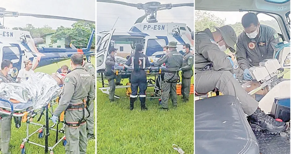 O homem foi resgatado pelo Núcleo de Operações e Transporte Aéreo da Secretaria da Casa Militar - ES (Notaer) e foi encaminhado ao Hospital de Urgência e Emergência de Vitória (HEUE), antigo São Lucas.