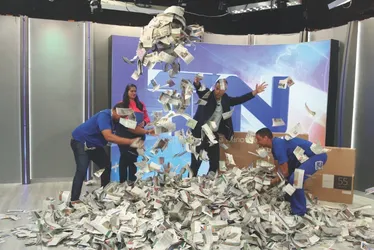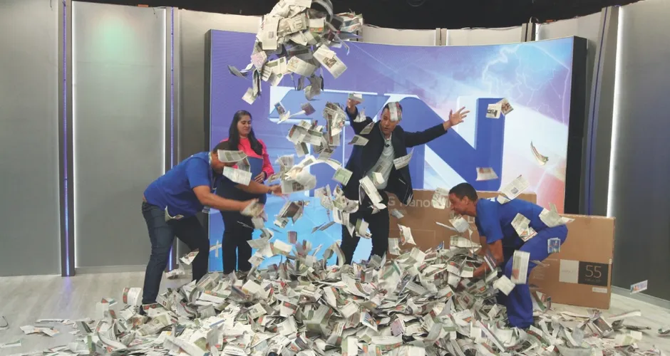 O apresentador Camargão foi quem sorteou os dois ganhadores da promoção durante transmissão do Tribuna Notícias 1ª Edição, da TV Tribuna/Band |  Foto: Fábio Nunes/AT