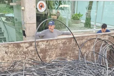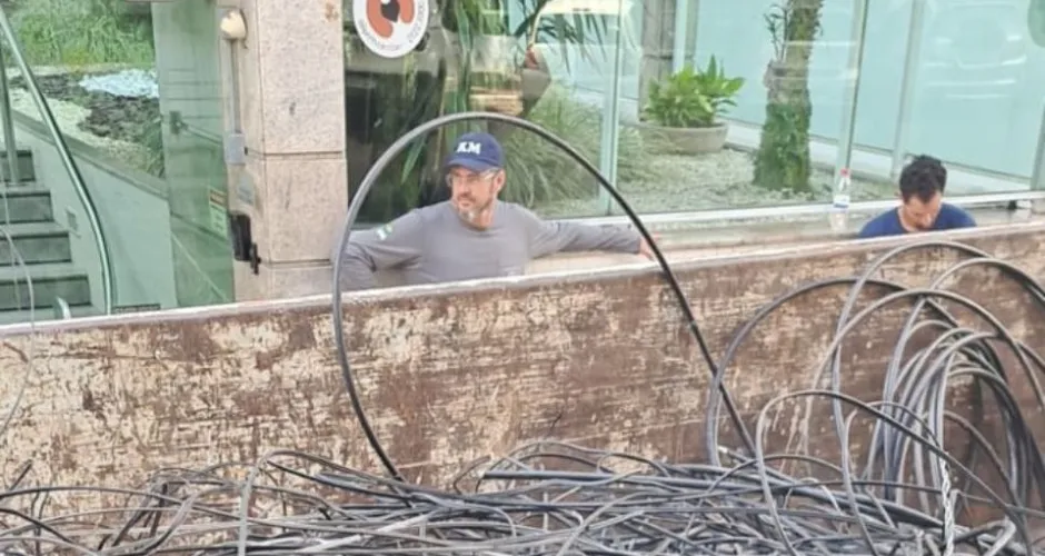 Mais de 800 kg de cabos são retirados de postes na Praia do Canto