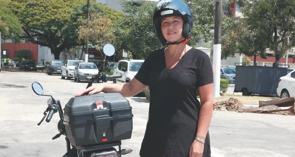 A dona de casa Daniely Castelube, de 43 anos, comprou uma moto elétrica em 2022, antes de regulamentação.