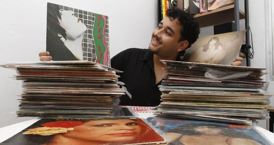 Ele conta que começou a colecionar CDs em 2015, com artistas mais atuais. No entanto, foi ao se deparar com um disco da cantora Rita Lee, de quem é fã, que se encantou pelos vinis — formato que passou a priorizar desde então.