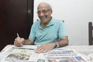 Gedeon Alves Oliveira, de 92 anos, é assinante do jornal A Tribuna e está na torcida para ganhar uma Smart TV LG Nanocell de 65 polegadas