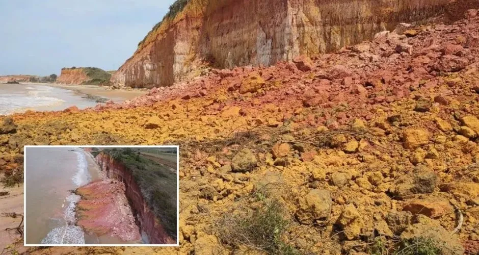 Mais de 360 metros da Praia dos Cações foram interditados após desabamento de falésias.