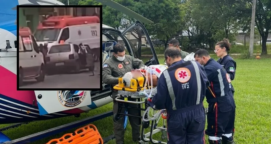 Após ser retirado e imobilizado, o homem foi socorrido por um helicóptero do Notaer