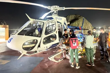 Paciente teve de ser socorrido por um helicóptero devido aos ferimentos