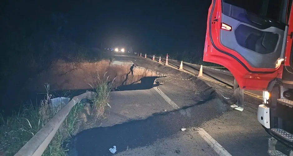 A cratera teria sido provocada pelas chuvas recentes na região. |  Foto: Reprodução/Corpo de Bombeiros
