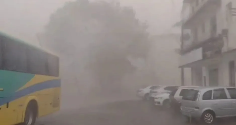 Uma forte tempestade, acompanhada de ventos intensos e granizo, atingiu Guaçuí, na região do Caparaó capixaba, na tarde desta segunda-feira (10).