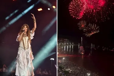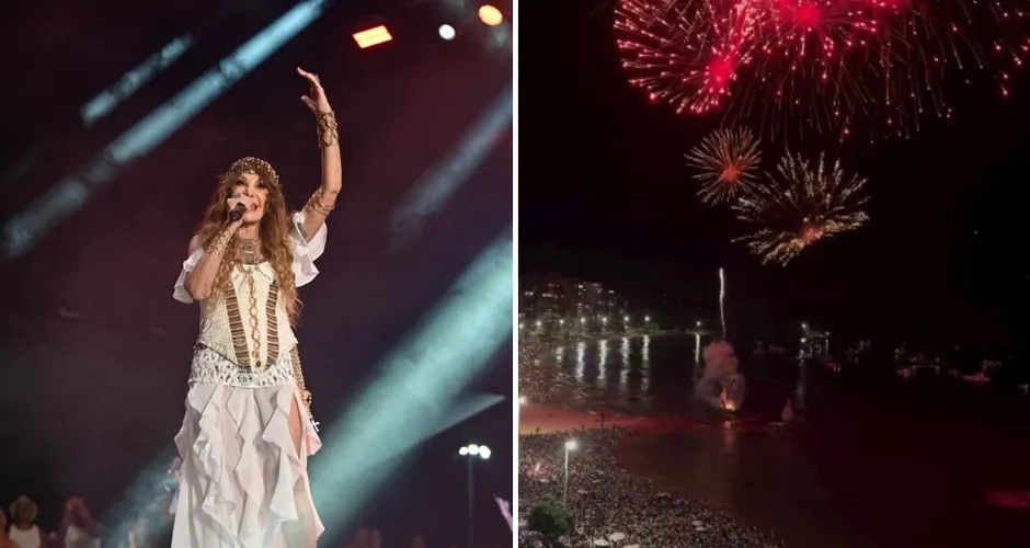 Show de Elba Ramalho em Camburi e queima de fogos na Praia do Morro |  Foto: Reprodução/Instagram/@vitoriaonline/@sandrotoledo