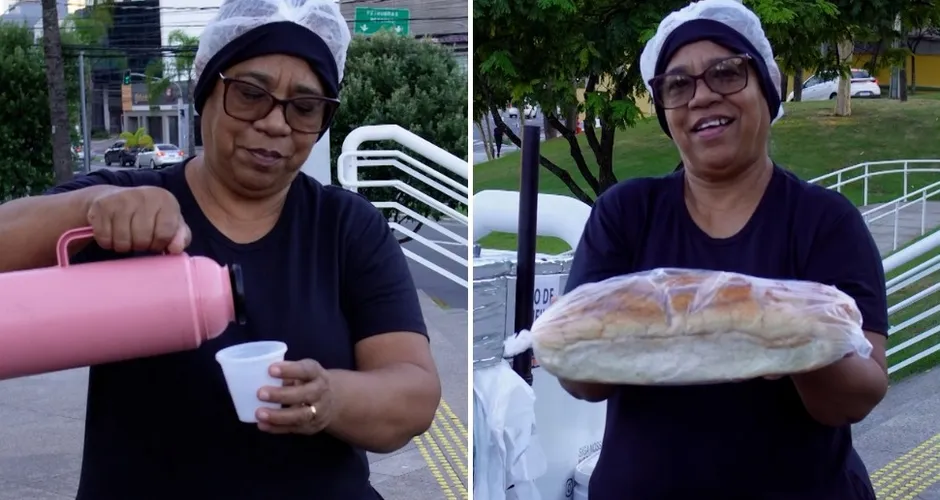 Há três anos, a fonte de renda de Dona Marizete Vieira Ribeiro deixou de ser um emprego formal e passou a ser a venda de cafés e bolos. Aos 59 anos, ela acorda às 3 horas para preparar os alimentos vendidos. Tudo é levado de bike até a Avenida Nossa Senhora da Penha, em Vitória, e por volta das 5h30 os clientes já começam a aparecer.