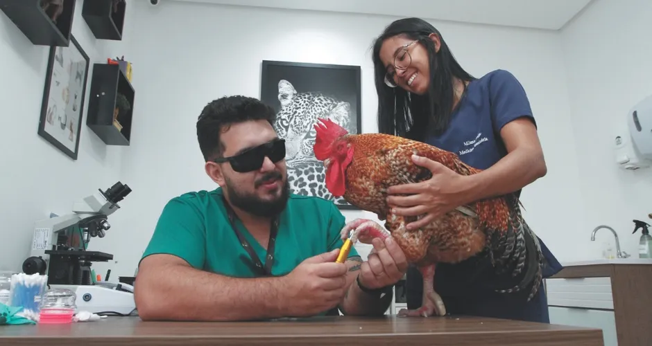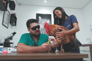 Esse é o caso do galo Júlio. Sua tutora, a bibliotecária Roberta Trindade Falcão, conta que, nos últimos anos, o animal apresentou um quadro de pododermatite, e também de sinusite crônica.