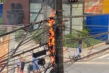 VÍDEO | Poste em chamas assusta moradores de Itapuã