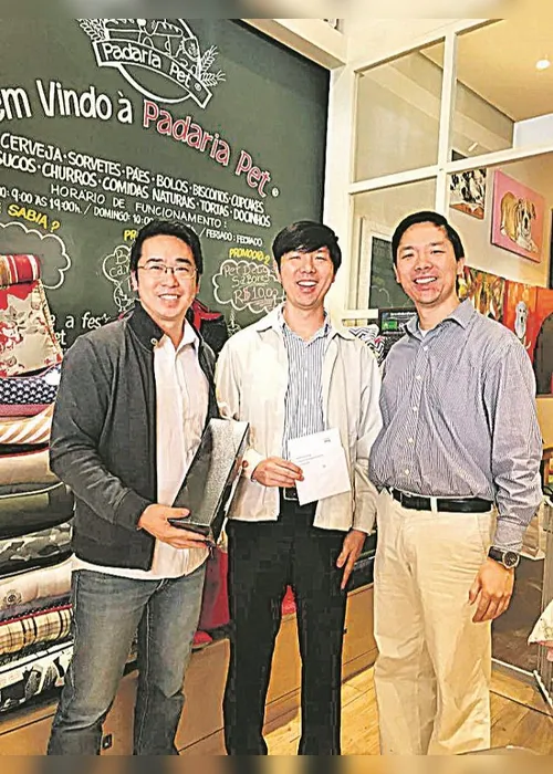 Arquelau So, sócio da Padaria Pet ao lado de Rodrigo Chen e Ricardo Chen, esclarece que diferentes critérios são avaliados na implantação de franqueadas, que podem ser lojas ou quiosques.