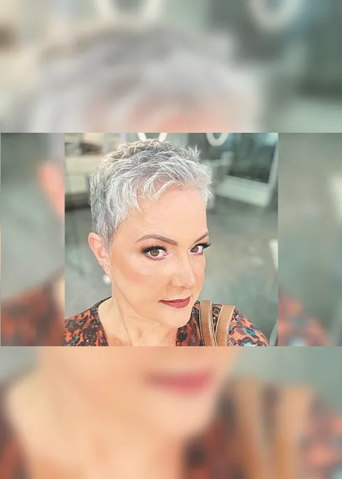 Aos 58 anos, a servidora pública federal Mônica Pretti Haynes decidiu assumir com estilo as madeixas grisalhas e optou por um corte moderno para complementar o look. Antes, seguia uma rotina de coloração para camuflar o branco. Agora exibe o visual com orgulho.