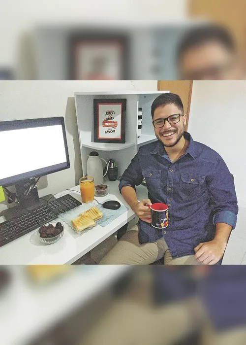 “Eu trabalho com criação e às vezes tem dia que não vem uma luz para criar algo, aí eu vou na geladeira e pego um bolo, um biscoito... Além disso, minha mãe está em casa e faz doces para nós... Eu sou muito hiperativo e quando estou ansioso eu vou comer alguma coisa. O resultado? Fui colocar uma camisa essa semana e estava apertadinha”.