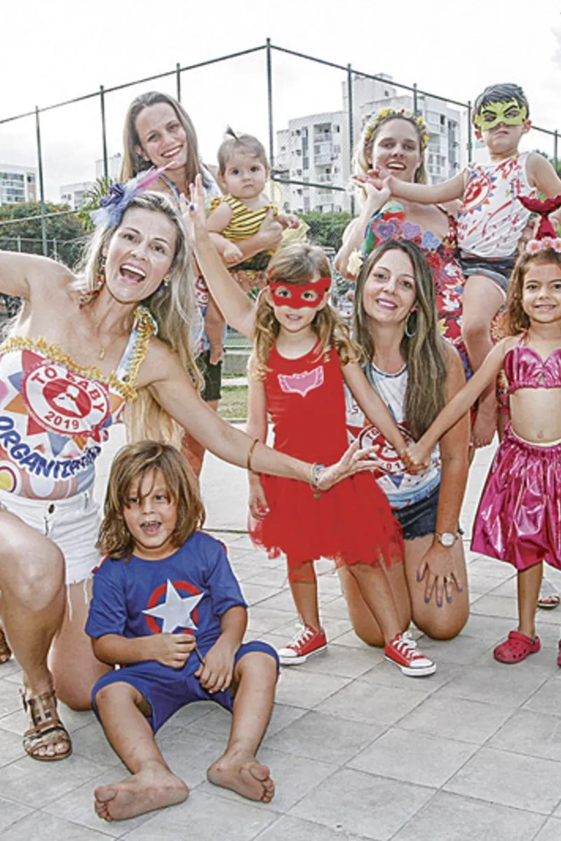 As integrantes do bloco Sara Milli, mãe de Enzo, de 5 anos; Cristiane Costalonga, mãe da Aila, de 9 meses; Raquel, mãe de Júlia, 5, e Arthur, de 5 meses; e Renata Tavares, mãe da Alícia, 4, vão levar os pequenos para curtir a folia.