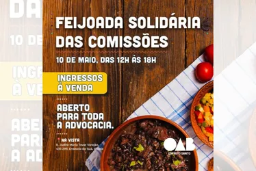 Essa é a primeira feijoada organizada pelas Comissões da Seccional Espírito Santo com apoio dos presidentes das Comissões. Os ingressos incluem bufê de feijoada completa e open chope, e podem ser adquiridos antecipadamente no valor de R$ 80 (1º lote) para advogado e R$120 para não advogado (1º lote).