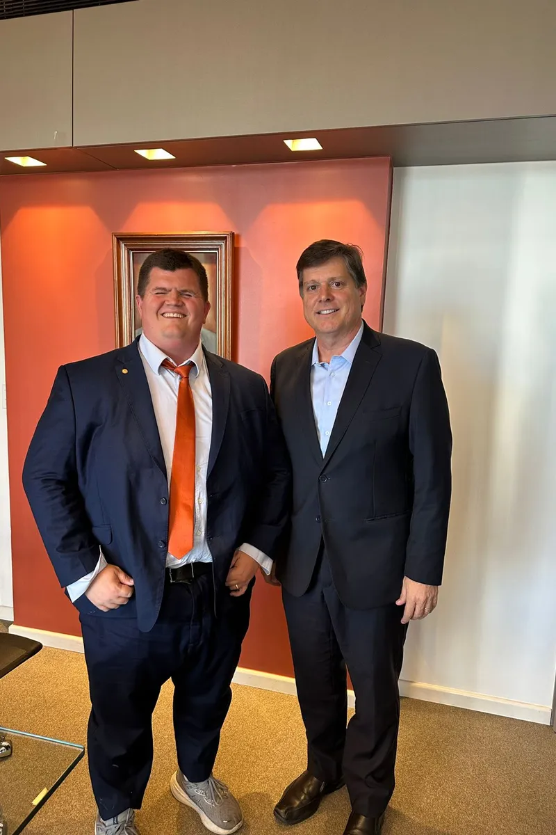 O secretário de Estado do Meio Ambiente, Felipe Rigoni (União), está em Brasília para participar do Conselho Nacional do Meio Ambiente (Conama). Entre uma agenda e outra, esteve com o deputado federal e presidente nacional do MDB, Baleia Rossi (SP). Ambos são amigos pessoais.