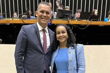 Deputado federal Gilson Daniel, presidente estadual do Podemos, e a capitã Estéfane Ferreira |  Foto: Reprodução/Redes sociais