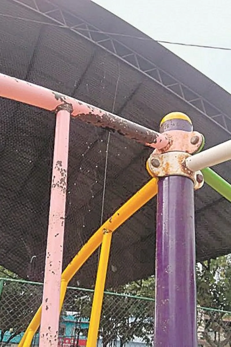 Brinquedos enferrujados em praça do bairro Castelo Branco, em Cariacica.