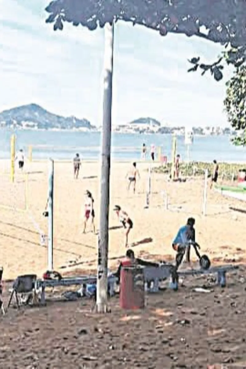 “Os campos de vôlei do final da praia lotaram na manhã do último dia 24. Pessoas disputando partidas e outras assistindo aos jogos”.