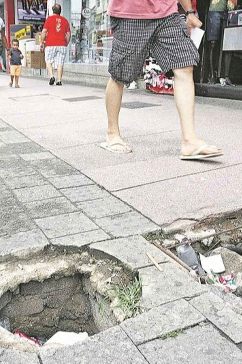 Segundo ele, em frente às agências da Caixa e do Itaú, entre as lojas Pernambucanas e Sipolatti, foram deixadas duas caixas abertas, sem tampas, que se transformam em armadilhas para quem circula pela região de grande movimento do comércio.