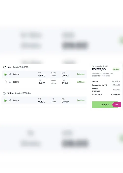 O feirão de passagens aéreas deste final de semana já está no ar com dezenas de voos baratos para os consumidores capixabas. O menor valor está disponível na promoção da Latam. A equipe do Tudo Viagem encontrou passagens de Vitória para o Rio de Janeiro (Aeroporto do Galeão) por apenas R$ 301, valor de ida e volta com taxas inclusas. Os voos sem escalas da capital capixaba para Brasília estão disponíveis por R$ 501.