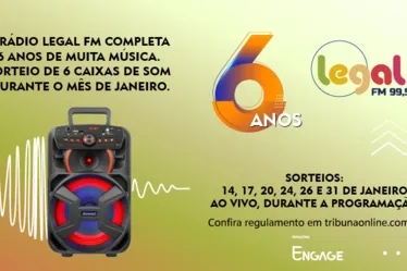• Os ganhadores serão divulgados na Rádio Legal FM e nas redes sociais da Rede Tribuna;