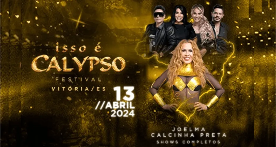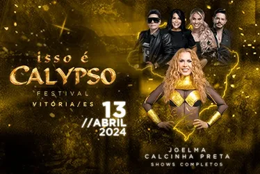 Prêmio: um par de ingressos (pista) para o evento Isso é Calypso Festival, sábado, 13 de abril de 2024, 20h, no Embraza Eventos (ao lado da Desportiva - Av. Mário Gurgel, 260 - Vasco da Gama, Cariacica).