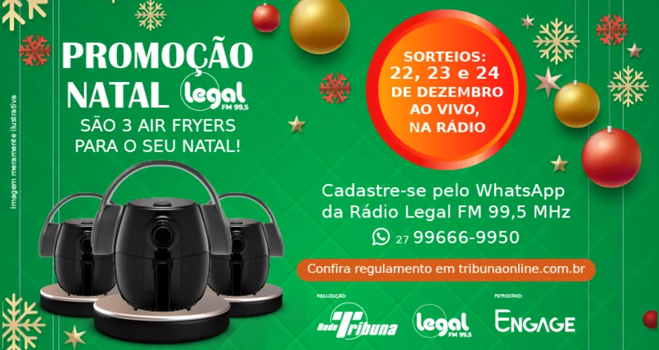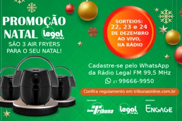 Os sorteios e apuração serão realizados nos dias 22, 23 e 24 de dezembro de 2025 (terça-feira), ao vivo na Rádio Legal FM Vitória 99,5 MHz.