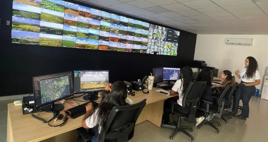 Rhilary dos Anjos, operadora de monitoramento, conta que a central funciona 24 horas por dia, com câmeras que vasculham a área em 360 graus automaticamente. Em caso de incêndio, é possível operar manualmente e visualizar com mais detalhes onde está o foco. Um trabalho de equipe que reduziu em 70% os impactos dos incêndios florestais em um ano.