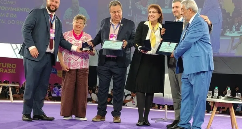 Representado a presidente da Petrobras, a engenheira Magda Chambriard, Sylvia Anjos recebeu a Láurea do Mérito 2025 das mãos do presidente do Conselho Federal de Engenharia e Agronomia (Confea), Vinícius Marchese.