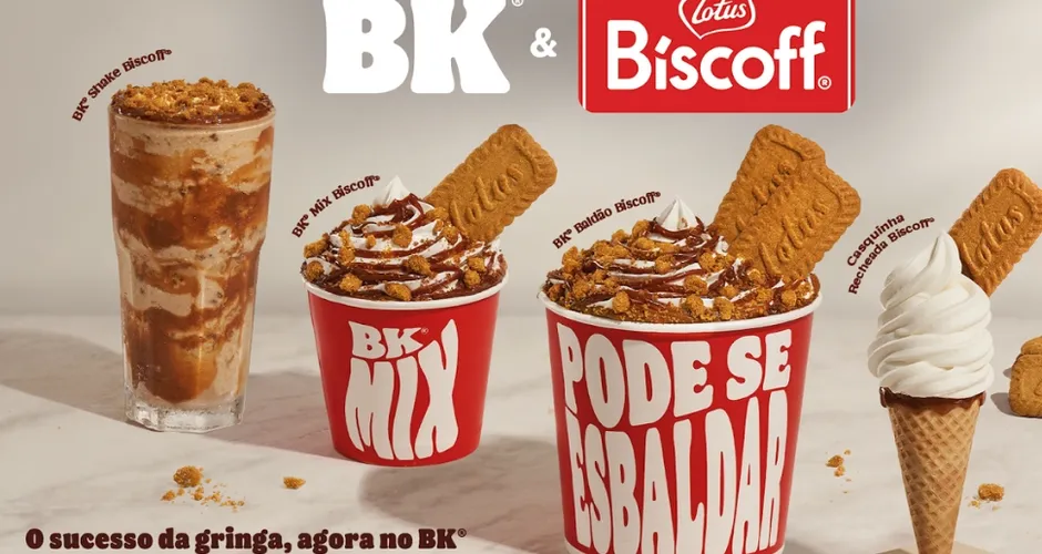 A nova linha combina a irreverência do BK com a tradição do produto, resultando em quatro versões que misturam texturas cremosas e crocantes. O portfólio inclui desde a clássica Casquinha Recheada até o generoso BK Baldão, todos elaborados com massa de baunilha, calda de doce de leite e, claro, pedaços ou unidades inteiras do Biscoff, garantindo o perfil de sabor único que viralizou nas redes sociais.