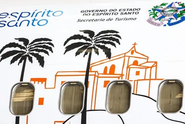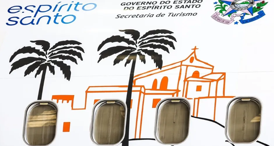 Na identidade visual do avião, foram escolhidos símbolos ligados à cultura e à paisagem capixaba: o Convento da Penha, a Pedra Azul com a “ponta do lagarto” em destaque e o salto de uma baleia-jubarte, em referência à fauna marinha local. A arte também leva o selo do Governo do Estado e da Secretaria de Turismo.