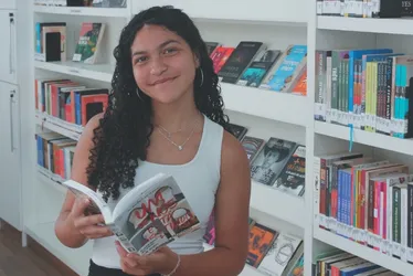 A estudante e menor aprendiz Sandra Picinatti conta que, desde setembro do ano passado, já pegou cinco livros emprestados, e que já influenciou amigos na leitura.