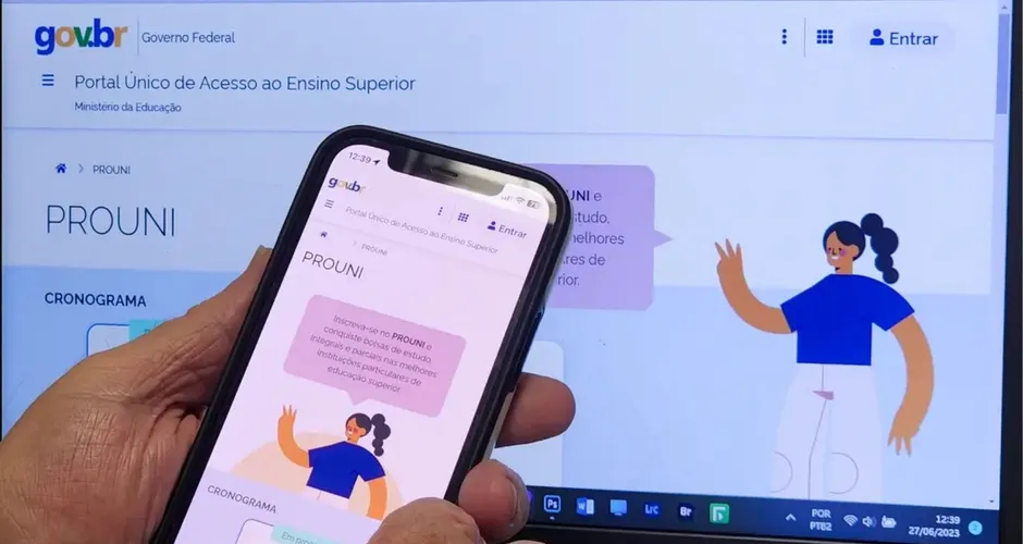 A inscrição é gratuita e feita somente pelo Portal Único de Acesso ao Ensino Superior, na parte do Prouni, com login da plataforma Gov.br.