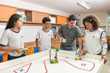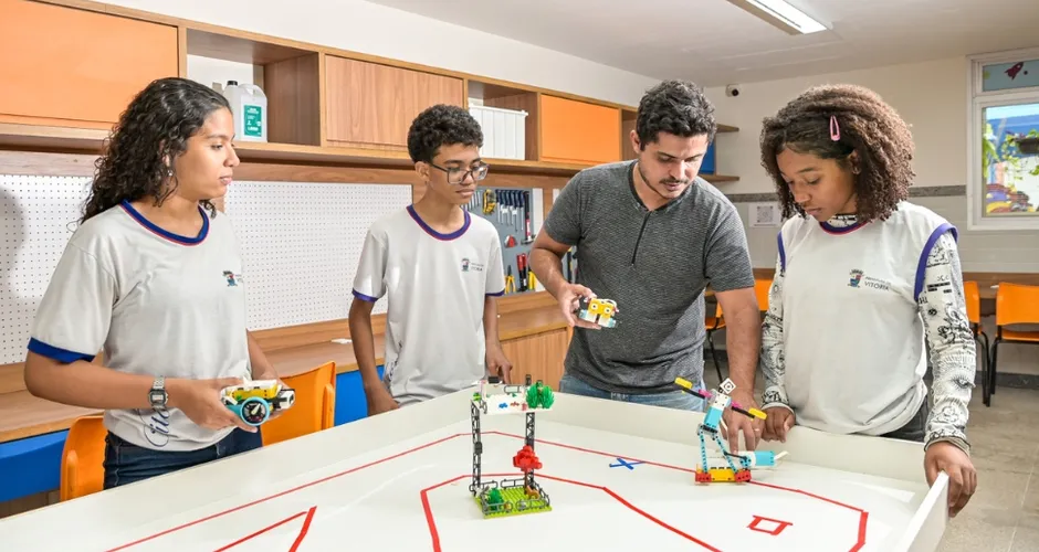 Sala maker, por exemplo, já é uma realidade para os alunos Isabela Freitas, Enzo Gabriel e Ana Clara Paixão, que contam com orientações do professor Leandro Rodrigues Nunes na Escola Municipal de Ensino Fundamental em Tempo Integral Paulo Reglus Neves Freire, no bairro Inhanguetá.