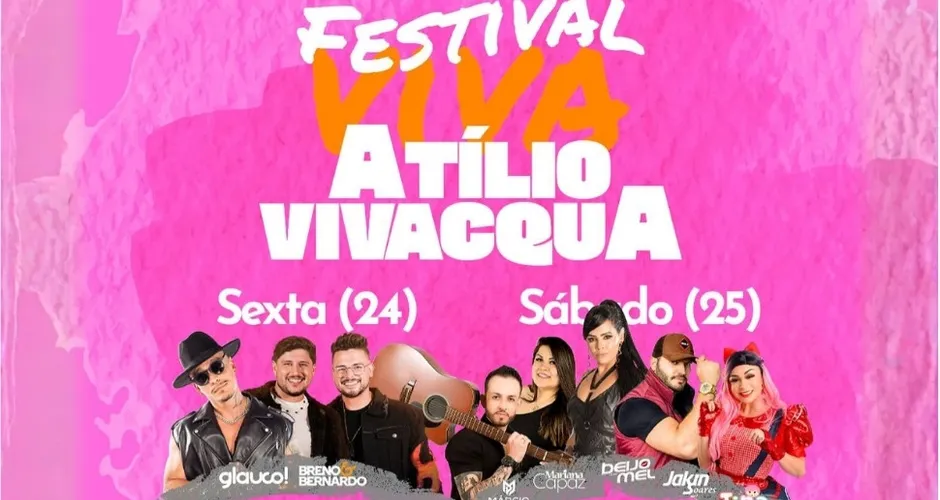No palco, nomes de destaque como Breno & Bernardo, Glauco, Mariana Capaz, Márcio Pedrazzini, Jakin Soares, Beijo com Mel e Tina Show garantem dois dias de pura diversão, celebrando o melhor do cenário musical capixaba.