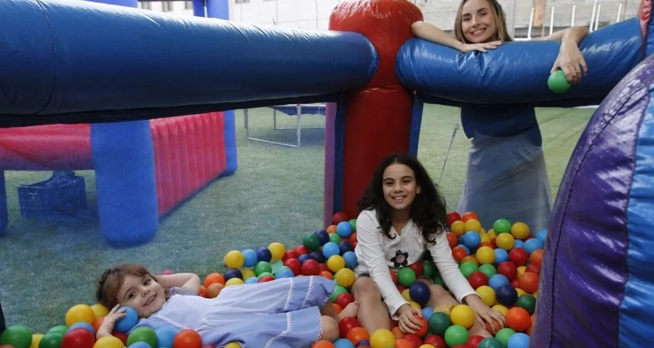 O quê: Espaço de diversão para crianças com infláveis, piscina de bolinhas e área de desenhos.