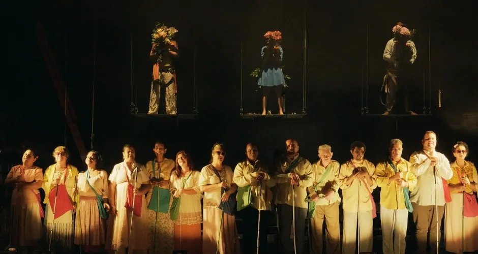 O corpo artístico do espetáculo é composto por 16 cantores cegos, que vão soltar a voz diretamente das janelas do Sebrae.