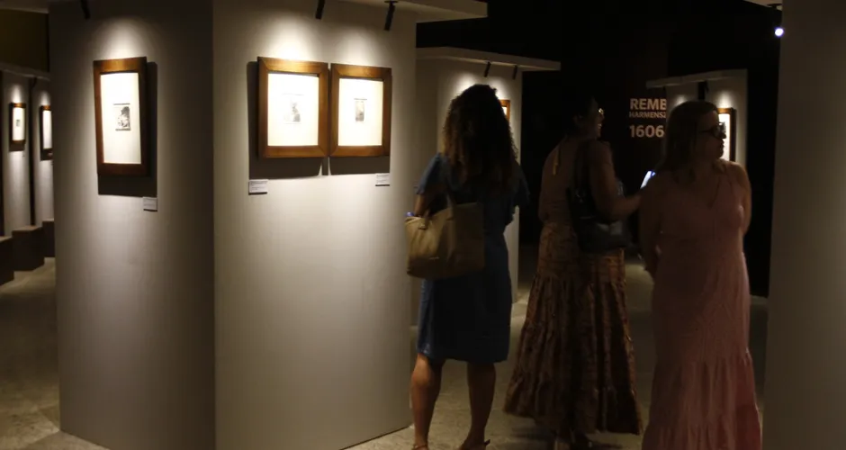 Visitantes conferem algumas gravuras na exposição inédita que traz obras do holandês Rembrandt |  Foto: Kadidja Fernandes / AT