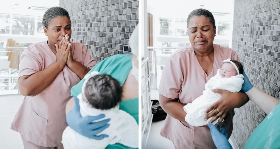 Imagem ilustrativa da imagem Vídeo de avó chorando ao conhecer neta recém nascida em Vila Velha emociona web